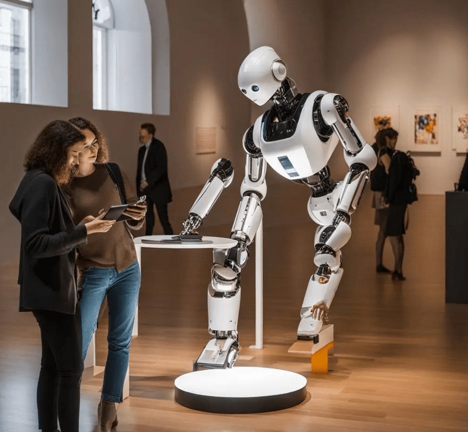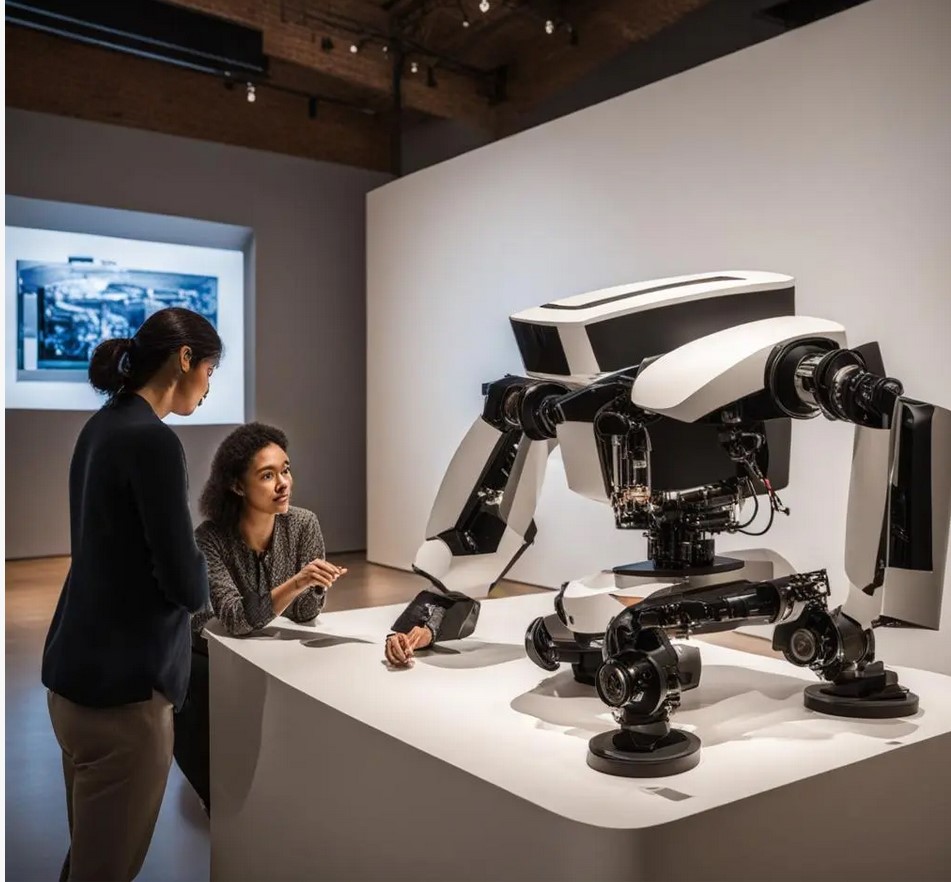 AI driven chatbots are potential tools to provide constant and immediate interaction with the visitors and to support them in their navigation onsite and online. Interactive exhibits enable playful and deep engagement. This area is the one that has so far had the most effect on museum meditation, as museums started to implement AI driven chatbots very early. Chatbots and robots are the most common image people have in their mind, when it comes to museums and AI. This accounts also for AI-driven image generators, as the following illustrations show.